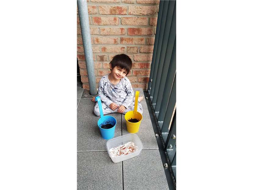 Kemal freut sich über den Brief aus dem Kinderhaus HAFEN! Mit viel Freude sät er die Samen aus!