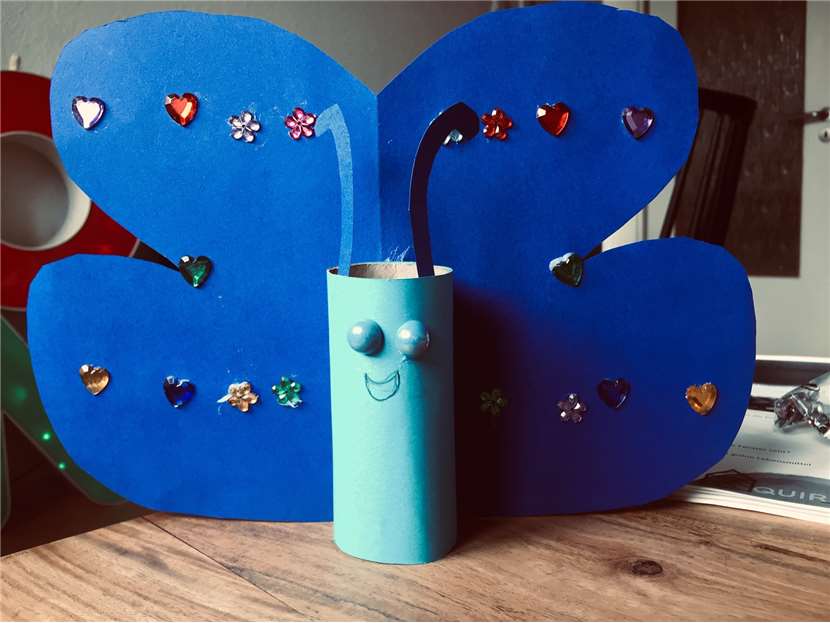 Den Schmetterling habe ich mit Mama gebastelt, Liebe Grüße an alle Erzieherinnen im Kinderhaus BLAU von Matilda und Manuela.