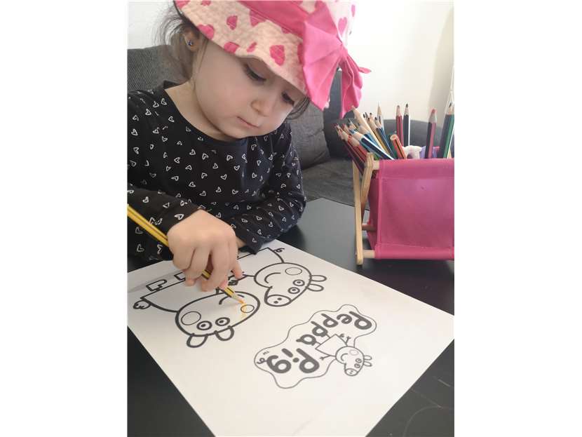 Azal Tammaa aus der Robbengruppe Kinderhaus HAFEN malt zuhause schöne Bilder aus.