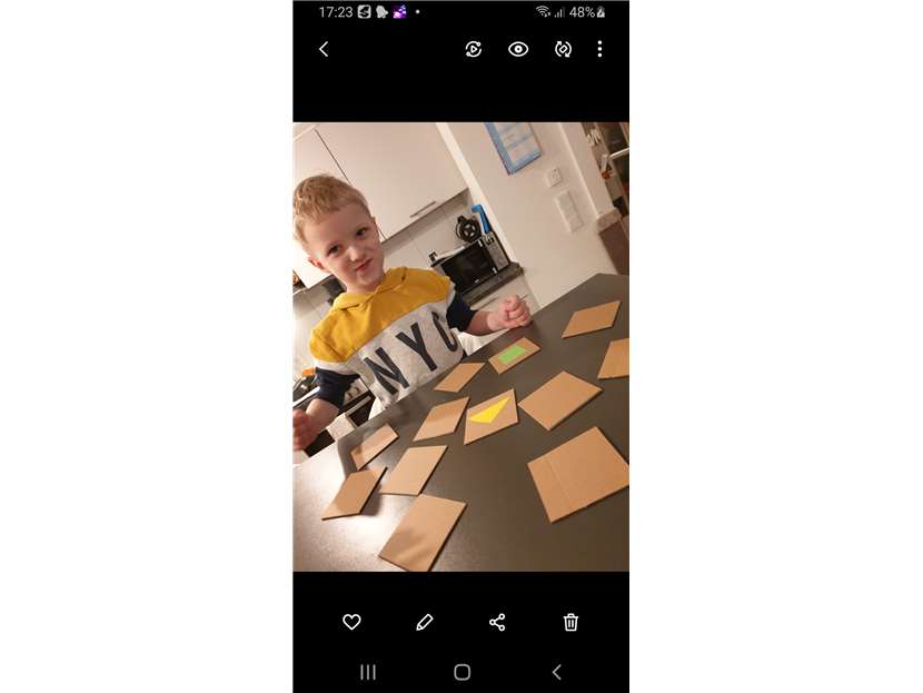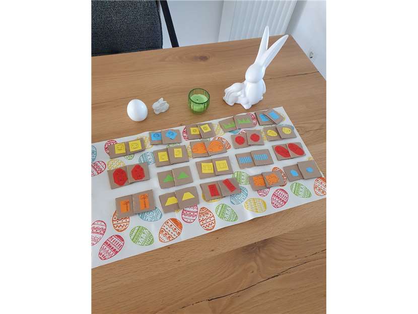 Erik Schmidt aus der Igelgruppe Kinderhaus QUERBEET spielt mit seinem selbst gebastelten Memory.