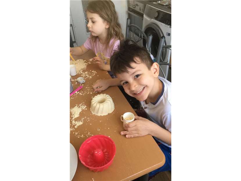 Familie Caushaj vom Kita-Einstiegsangebot hat mit dem Zaubersand Kuchen gebacken.